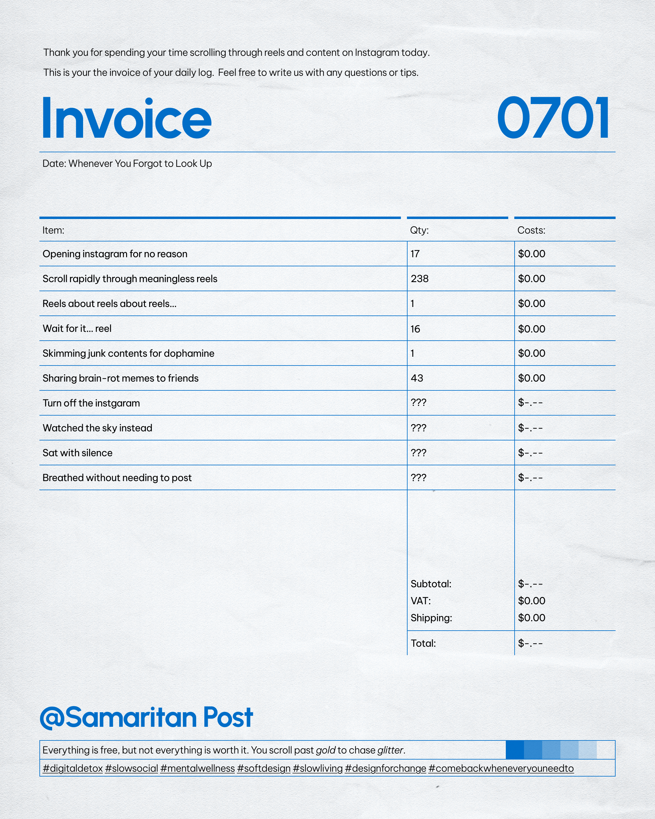 You don’t remember what you saw. But something saw you. Here’s your daily receipt. No charge — just a reminder. Not everything we consume is free.